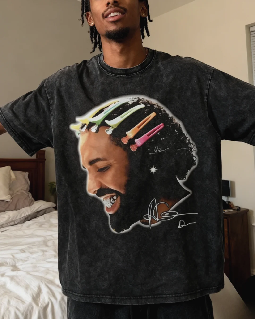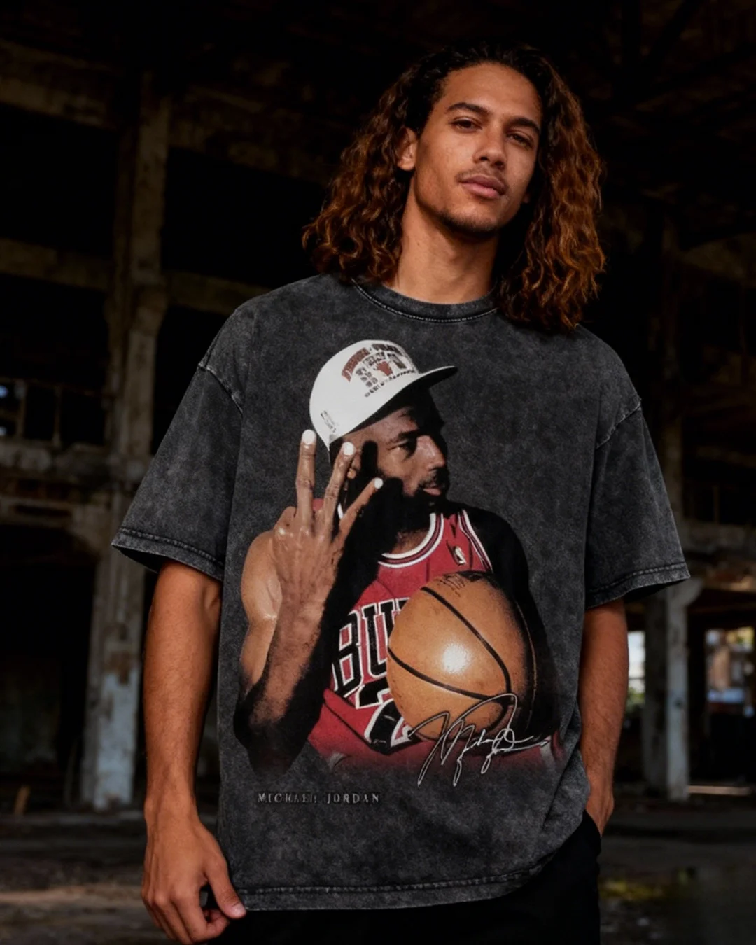 Michael Jordan Three Fingers Up Oversized Acid Wash T-shirt