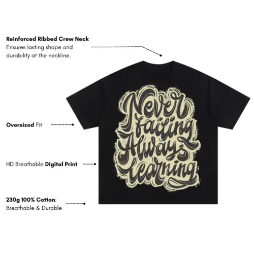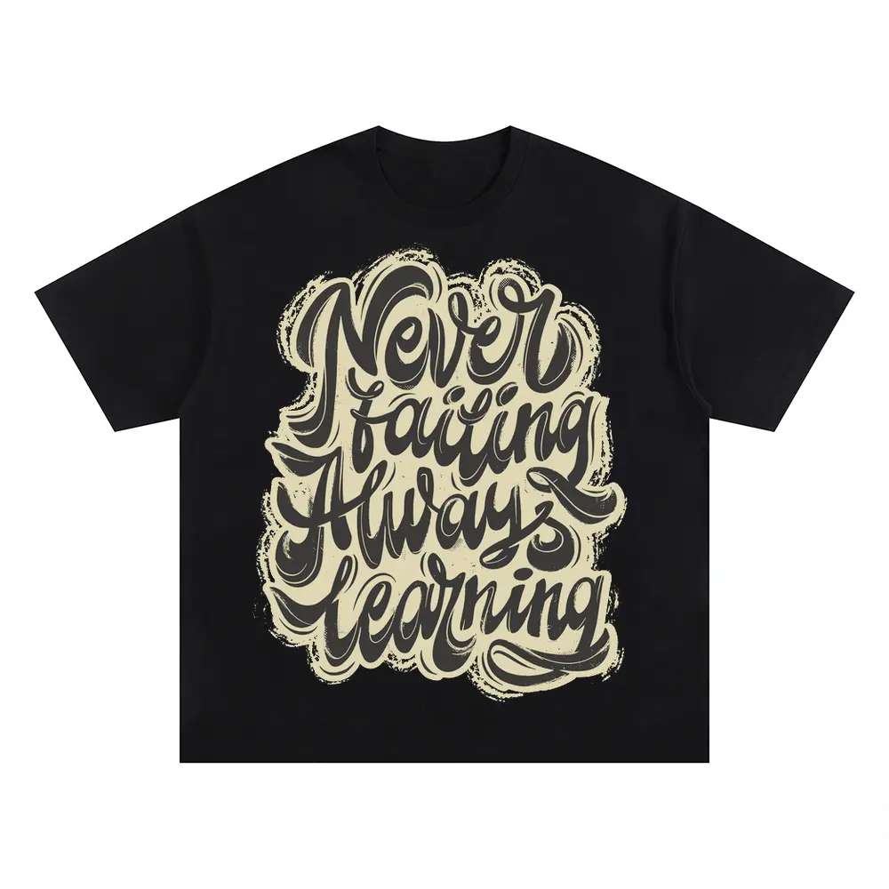08 Lettering Never Failing Always Learning Si Oversized Black Graphic Tee