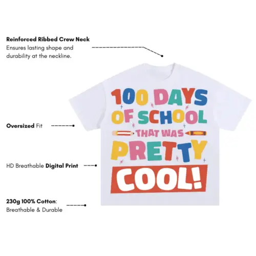 100 Days Of School Oversized White Graphic Tee