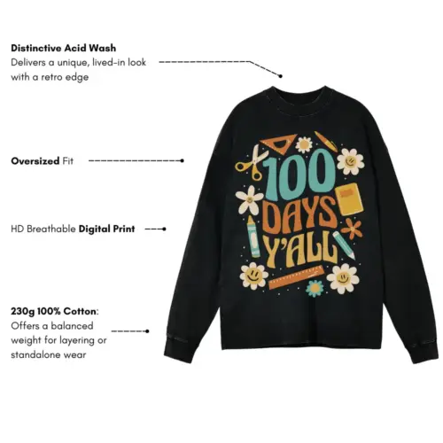 100 Days Acid Wash Oversized Long Sleeve Shirt