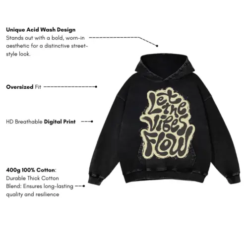 2 Lettering Let The Vibes Flow Si Acid Wash Oversized Hoodie
