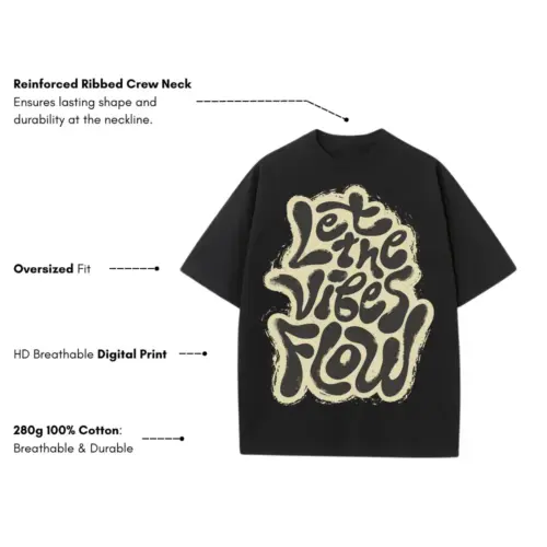2 Lettering Let The Vibes Flow Si Heavyweight Oversized Black Graphic Tee