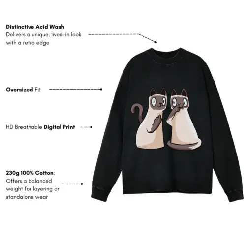 257 Siamese Cats Acid Wash Oversized Long Sleeve Shirt