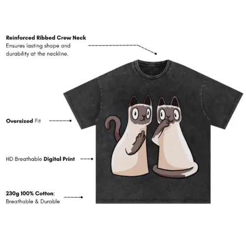 257 Siamese Cats Oversized Acid Wash T-shirt