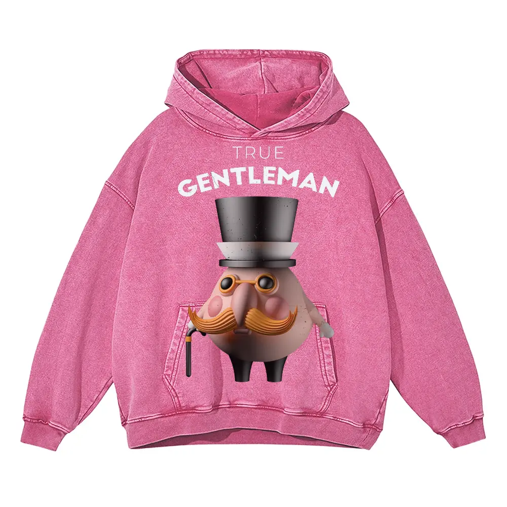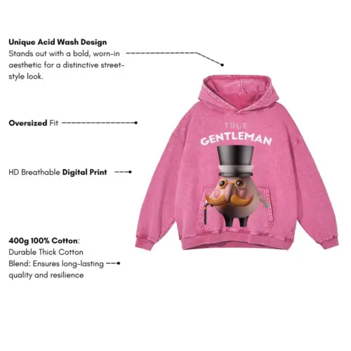 3D Character Gentleman Acid Wash Oversized Pink Hoodie