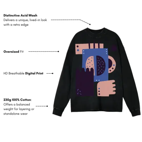 Abstract Coffee A Acid Wash Oversized Long Sleeve Shirt