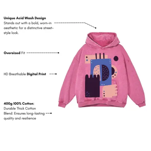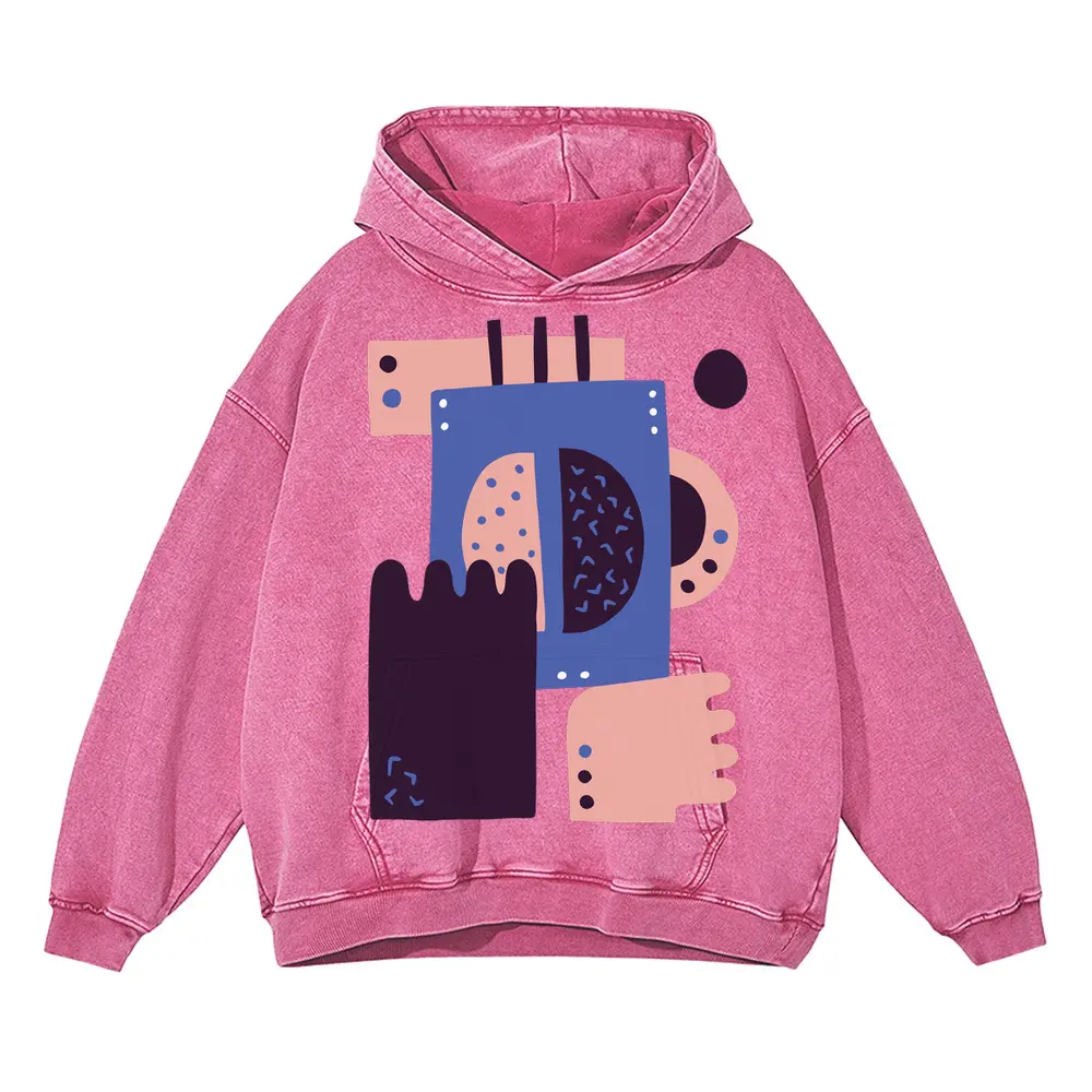 Abstract Coffee A Acid Wash Oversized Pink Hoodie