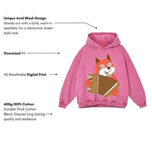 Accordion Dog Acid Wash Oversized Pink Hoodie
