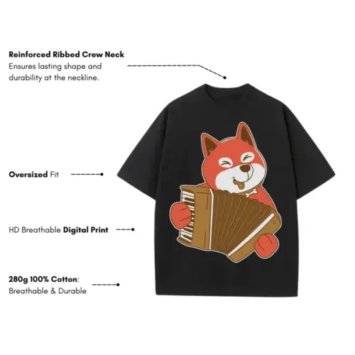 Accordion Dog Heavyweight Oversized Black Graphic Tee