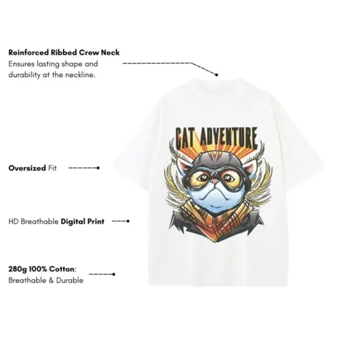 Adventure Cat Heavyweight Oversized White Graphic Tee