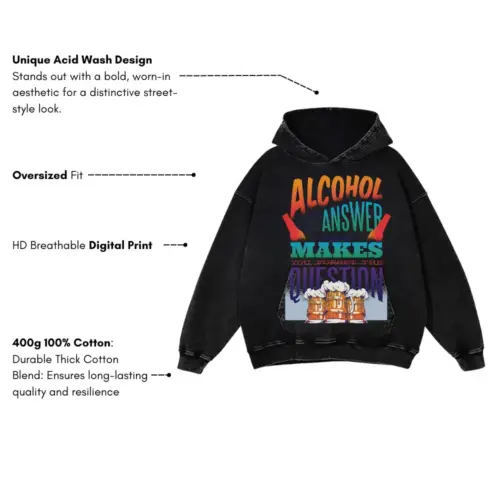 Alcohol Quote 0 Hq Acid Wash Oversized Hoodie