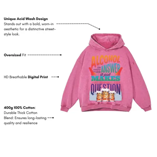 Alcohol Quote 0 Hq Acid Wash Oversized Pink Hoodie