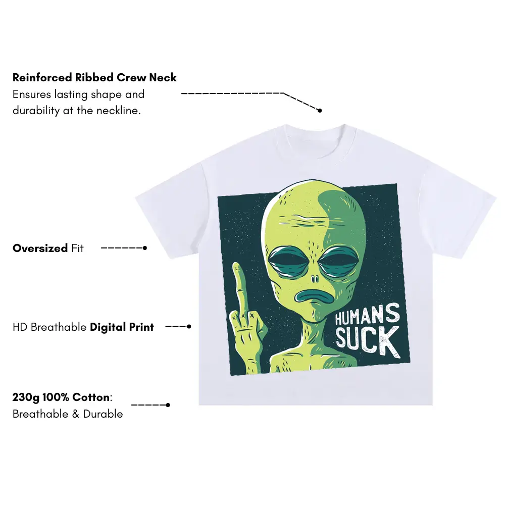 Alien 0 Hq Oversized White Graphic Tee
