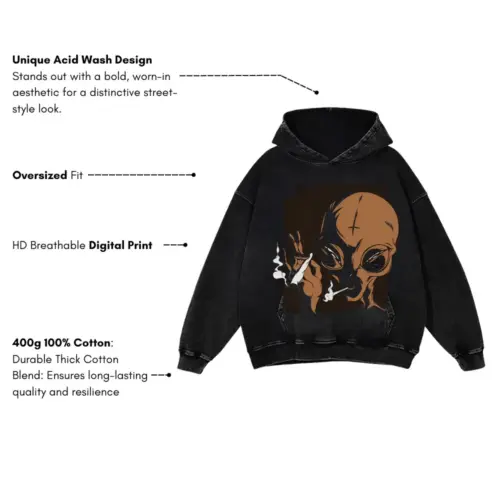 Alien 06 Hq Acid Wash Oversized Hoodie