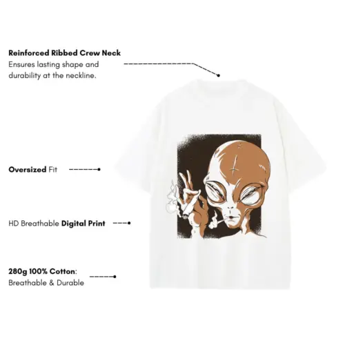Alien 06 Hq Heavyweight Oversized White Graphic Tee