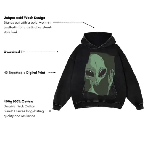 Alien Hand Acid Wash Oversized Hoodie