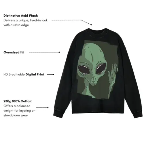 Alien Hand Acid Wash Oversized Long Sleeve Shirt