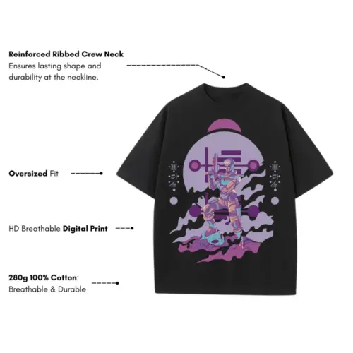 Alien Invasion C Heavyweight Oversized Black Graphic Tee