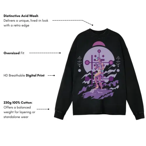 Alien Invasion F Acid Wash Oversized Long Sleeve Shirt