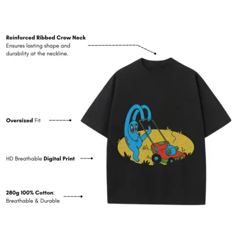 Alien Lawnmower Heavyweight Oversized Black Graphic Tee
