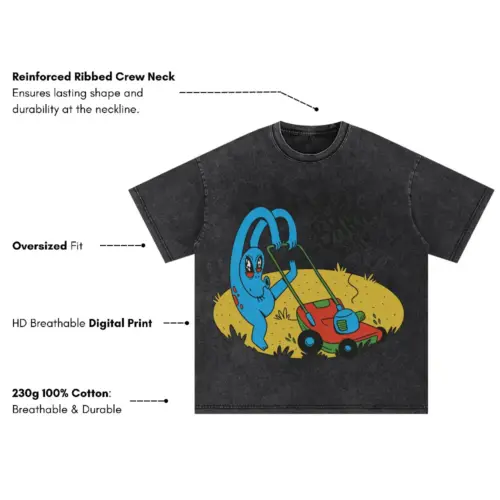 Alien Lawnmower Oversized Acid Wash T-shirt