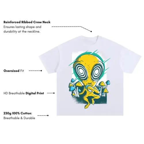 Alien Mushrooms 0 Hq Oversized White Graphic Tee