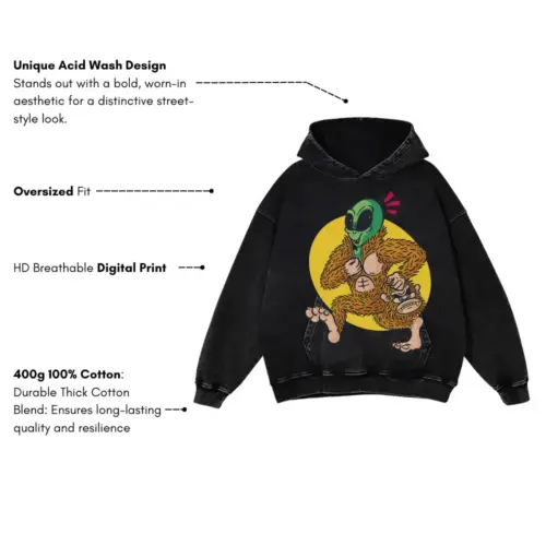 Alien Sassquatch Acid Wash Oversized Hoodie