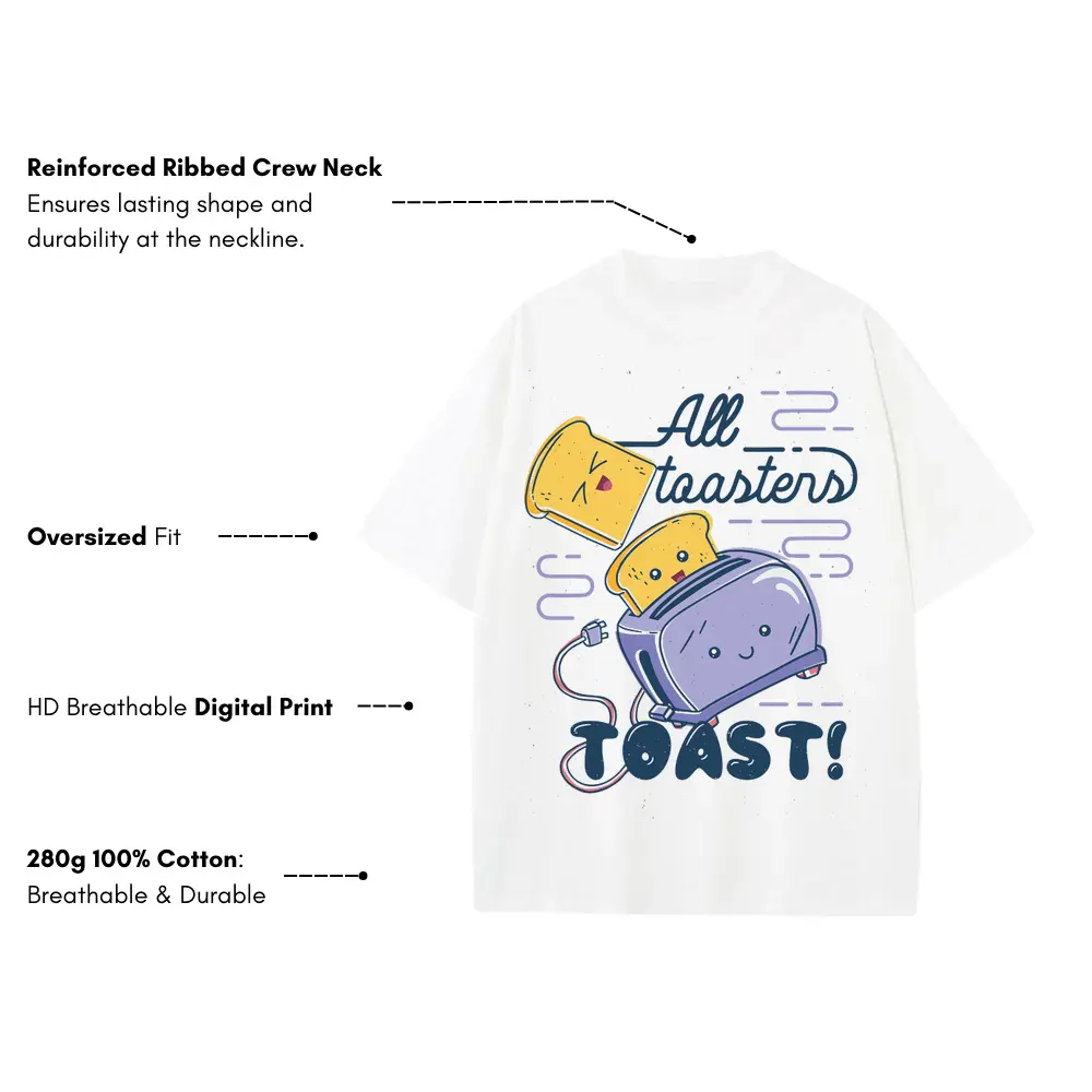 All Toasters Toast Heavyweight Oversized White Graphic Tee
