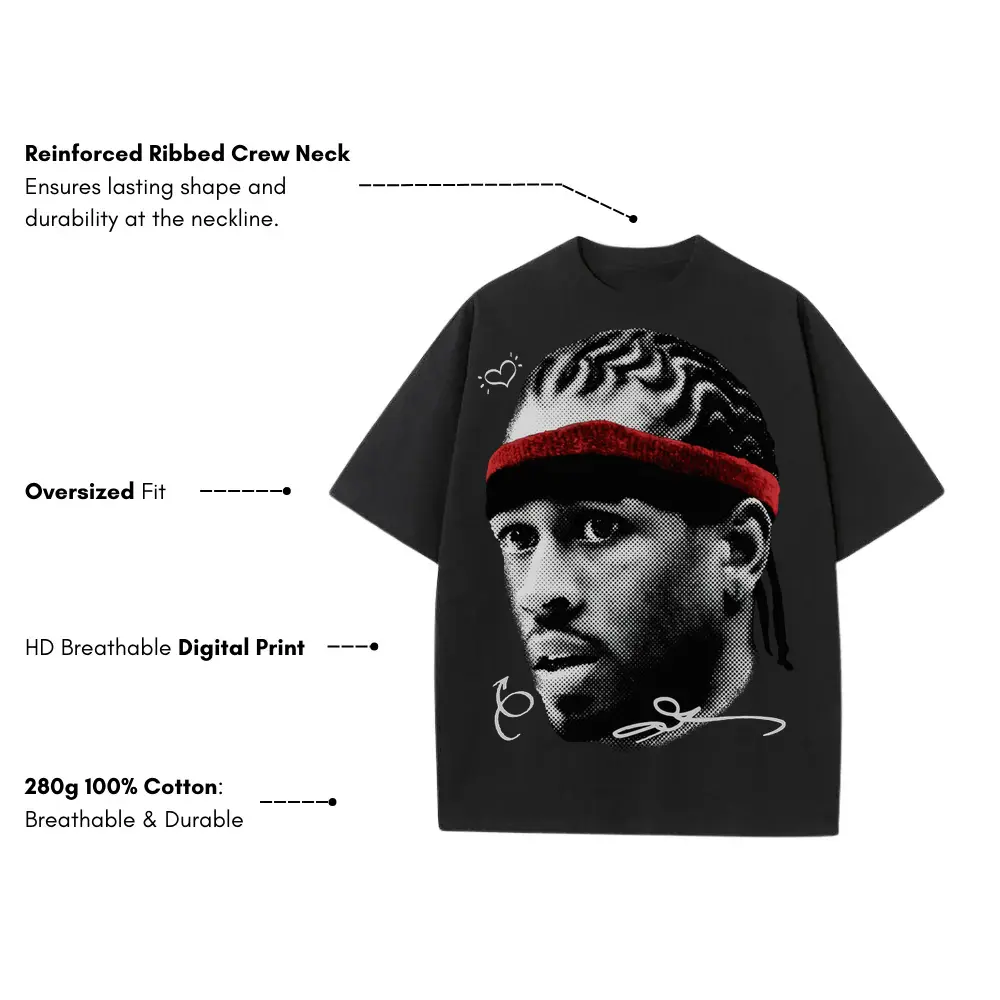 Allen Iverson ‘Headband’ Heavyweight Oversized Black Graphic Tee