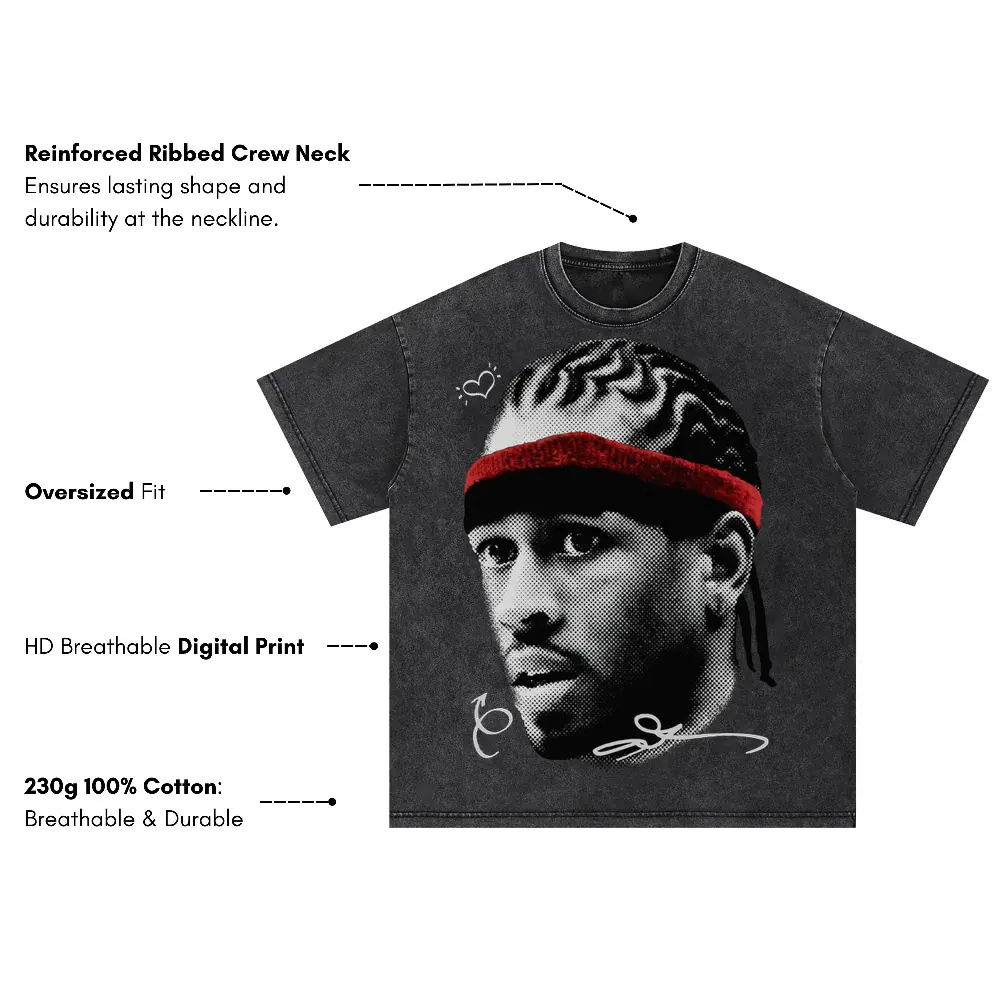 Allen Iverson ‘Headband’ Oversized Acid Wash T-shirt