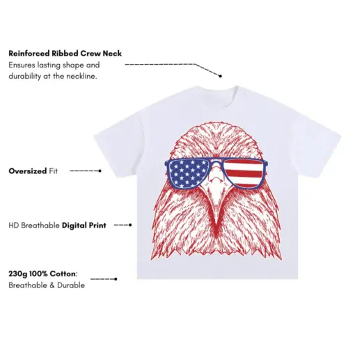 Americaeaglehanddrawn Oversized White Graphic Tee