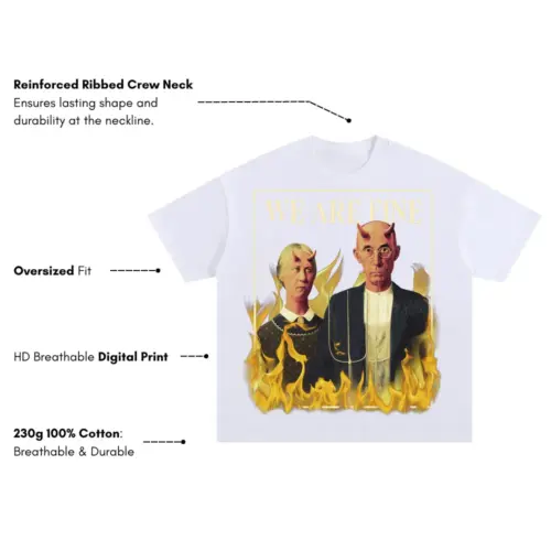 American Gothic Devils Psd Oversized White Graphic Tee