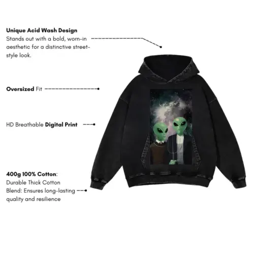 American Gothic Phonecase B Acid Wash Oversized Hoodie