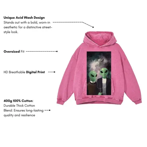 American Gothic Phonecase B Acid Wash Oversized Pink Hoodie