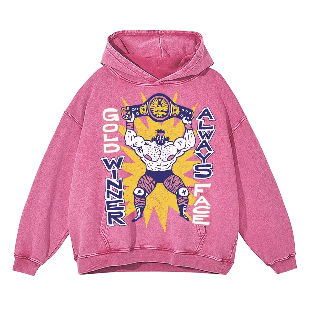 American Wrestling Acid Wash Oversized Pink Hoodie