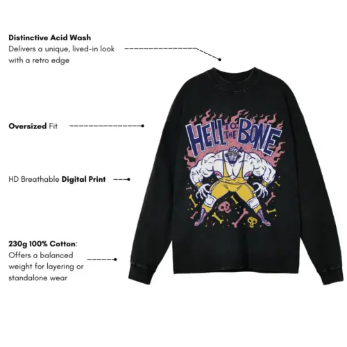 American Wrestling F Acid Wash Oversized Long Sleeve Shirt