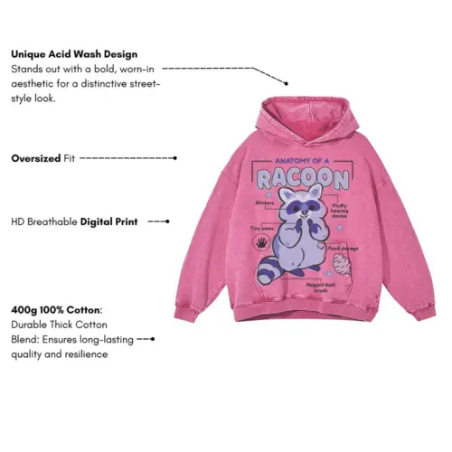 Anatomyofracoon Acid Wash Oversized Pink Hoodie