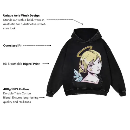 Angel Girl Anime Acid Wash Oversized Hoodie