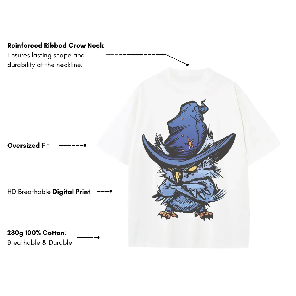 Angry Owl Witch Heavyweight Oversized White Graphic Tee