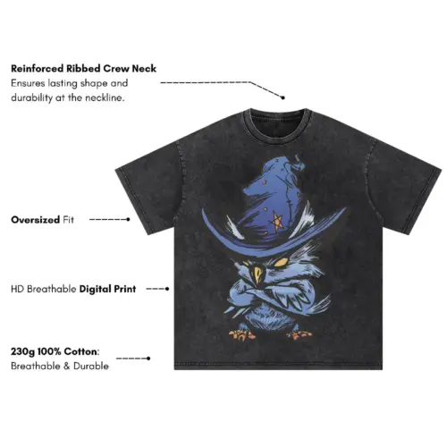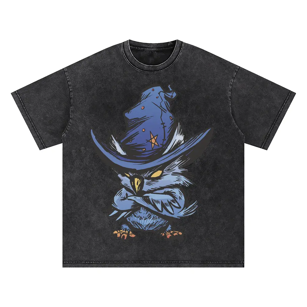 Angry Owl Witch Oversized Acid Wash T-shirt