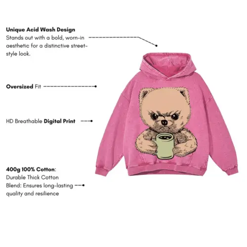 Angry Pomeranian Acid Wash Oversized Pink Hoodie