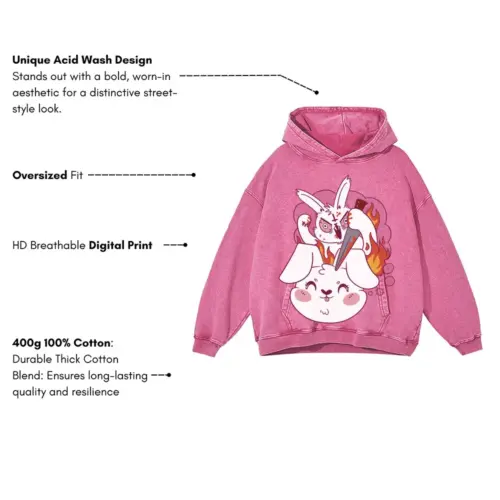 Angryrabbit Acid Wash Oversized Pink Hoodie
