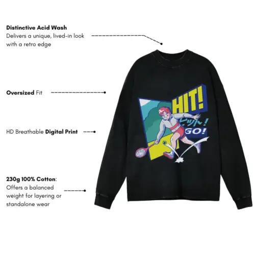 Anime Tennis Acid Wash Oversized Long Sleeve Shirt