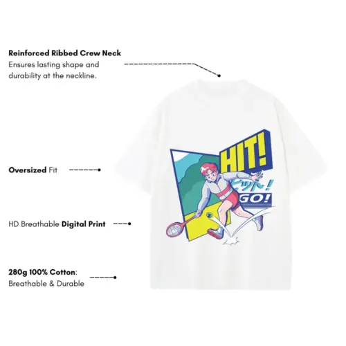 Anime Tennis Heavyweight Oversized White Graphic Tee
