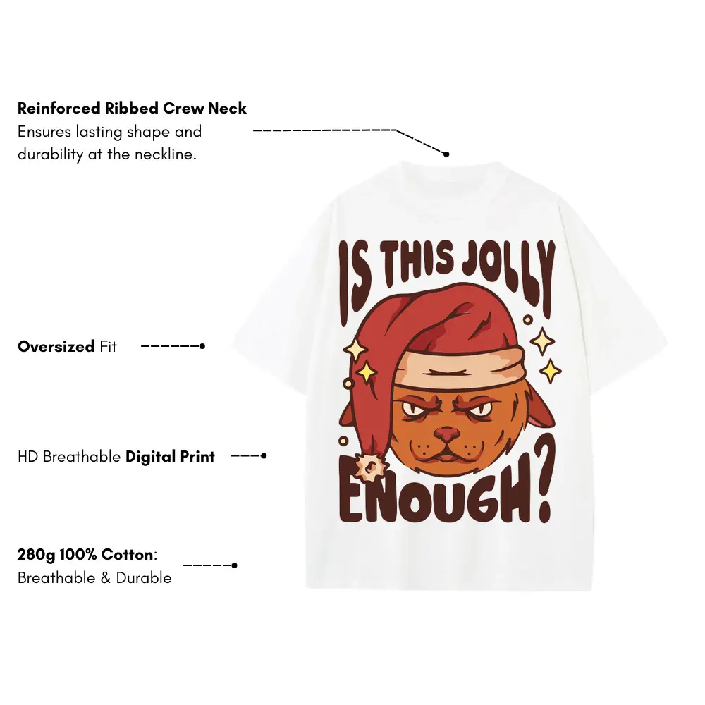 Anti Christmas Cat Heavyweight Oversized White Graphic Tee