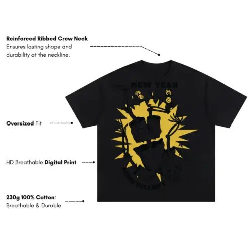 Anti New Year Same Bullshit Skeleton 2 T Oversized Black Graphic Tee