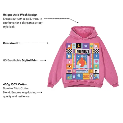 Aquarius Si Acid Wash Oversized Pink Hoodie