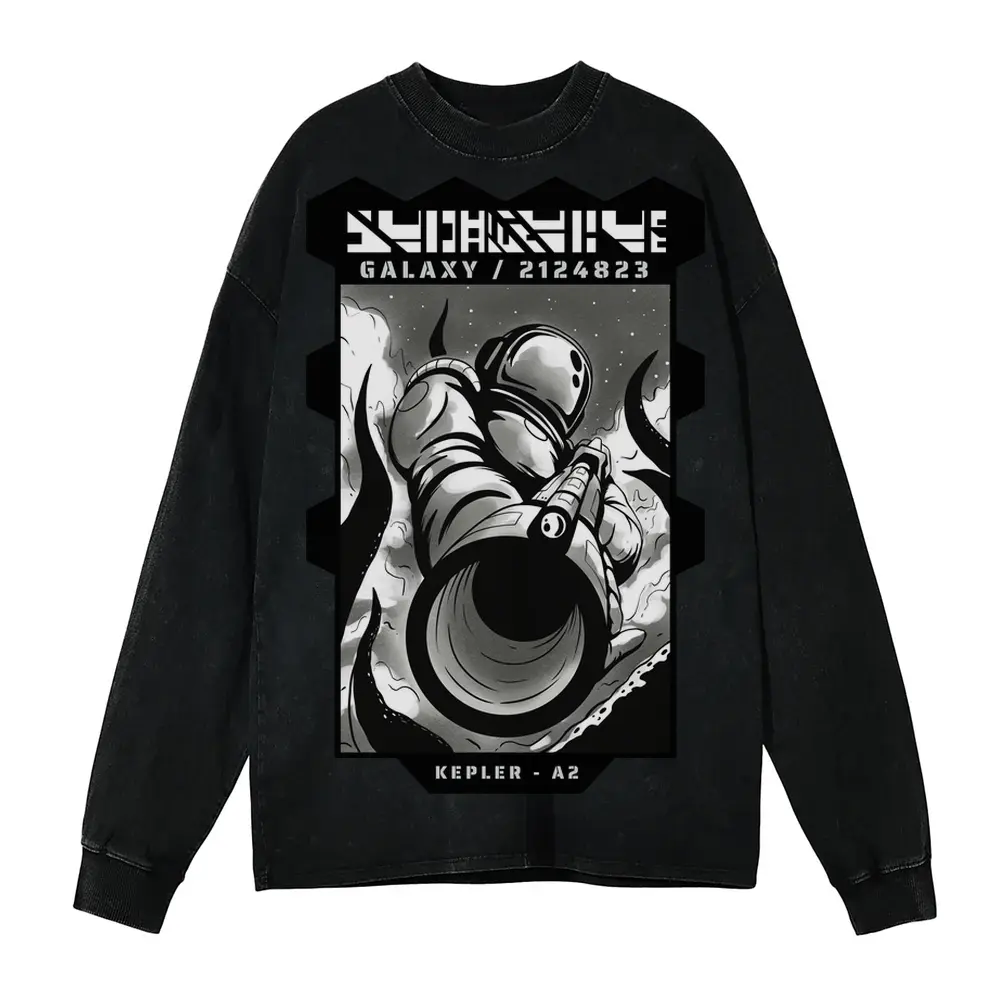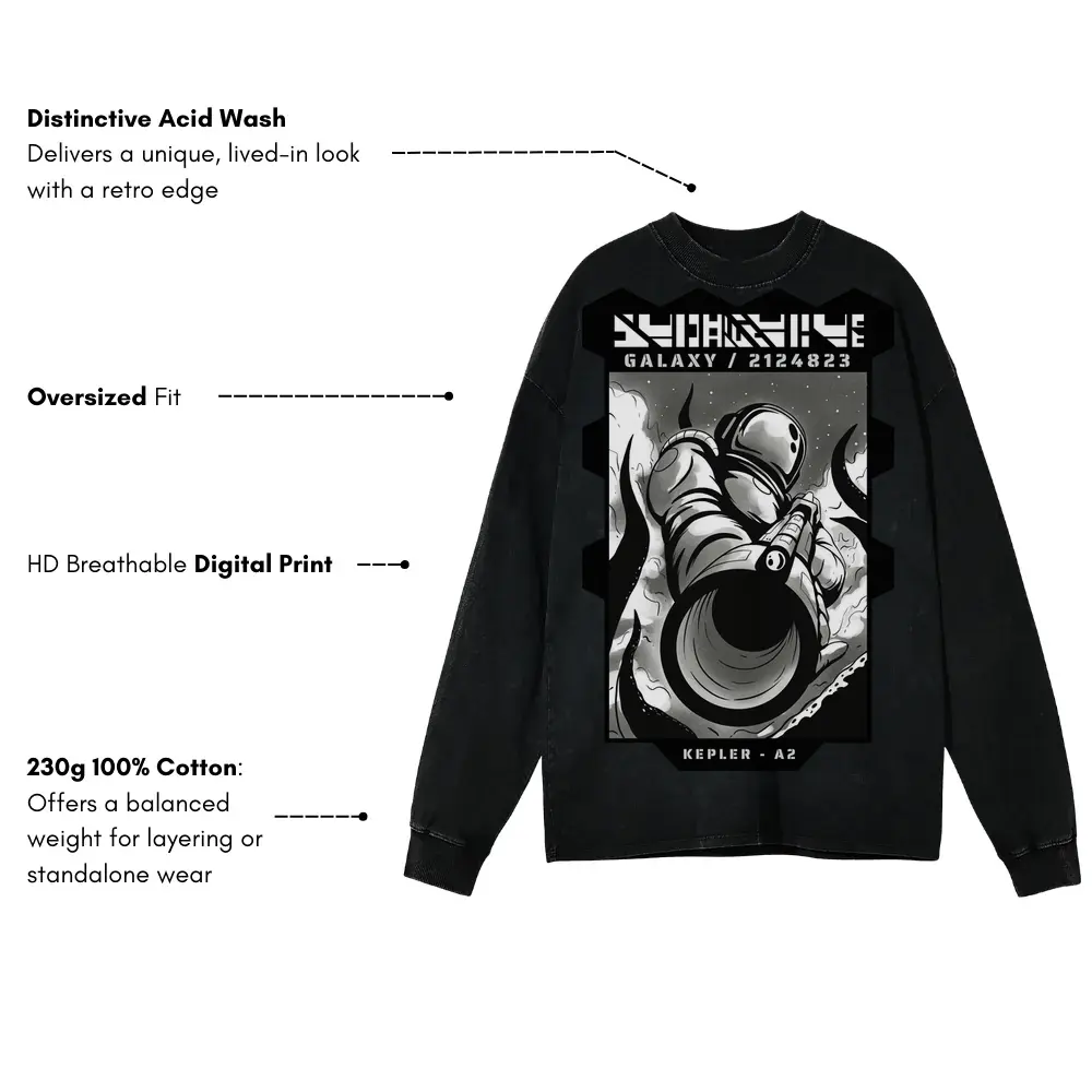 Astronauts K Acid Wash Oversized Long Sleeve Shirt