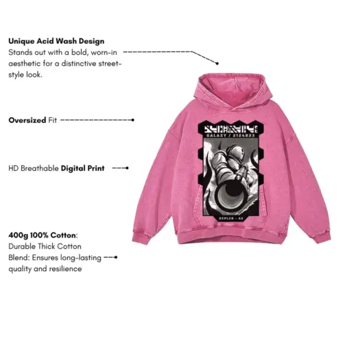 Astronauts K Acid Wash Oversized Pink Hoodie