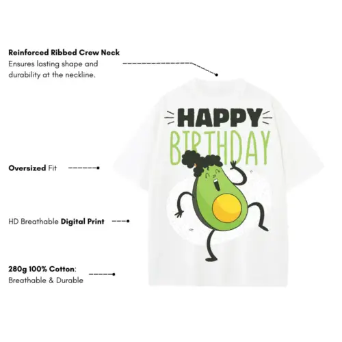 Avocado Birthday Heavyweight Oversized White Graphic Tee
